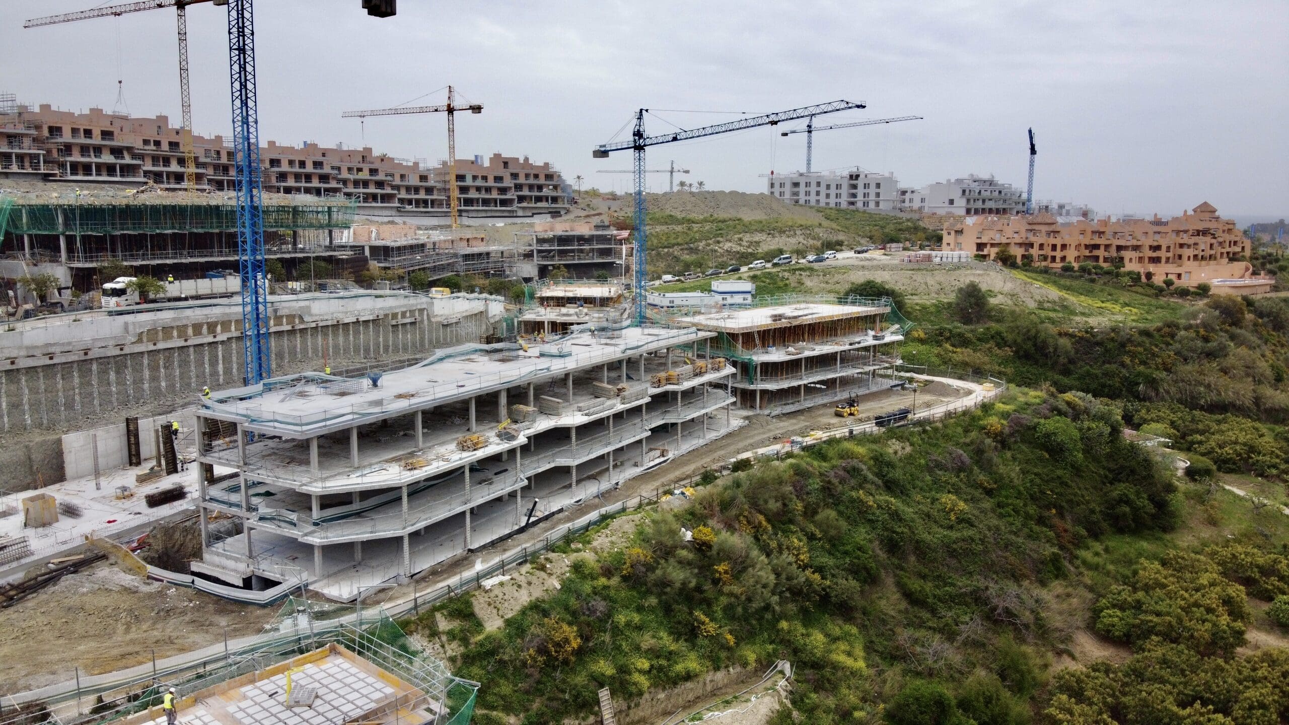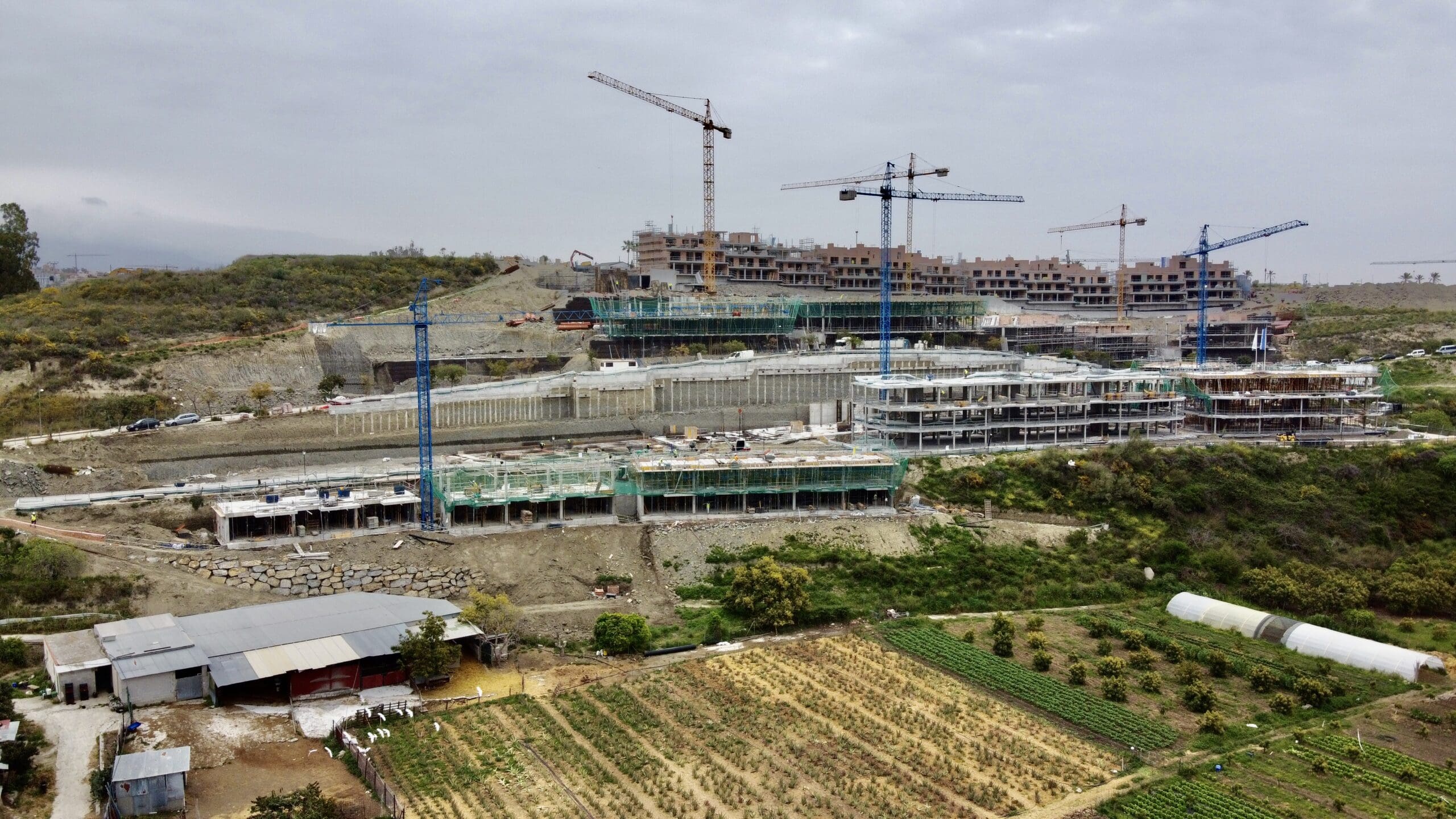 El proyecto tiene como punto de partida dos condicionantes claves: la topografía del lugar y el hecho que no se debía incidir negativamente en las vistas de las parcelas anexas, ubicadas al otro lado del vial. En cuanto al tratamiento de la topografía, la parcela se organiza en tres plataformas en pro de favorecer las vistas de las viviendas. En la parte superior, en la primera plataforma, se ubican cinco bloques paralelos al vial de acceso. En una segunda plataforma, se ubican dos bloques y las zonas comunes de piscina y deportivo. Por último, en la parte inferior, se agrupan once viviendas unifamiliares adosadas.