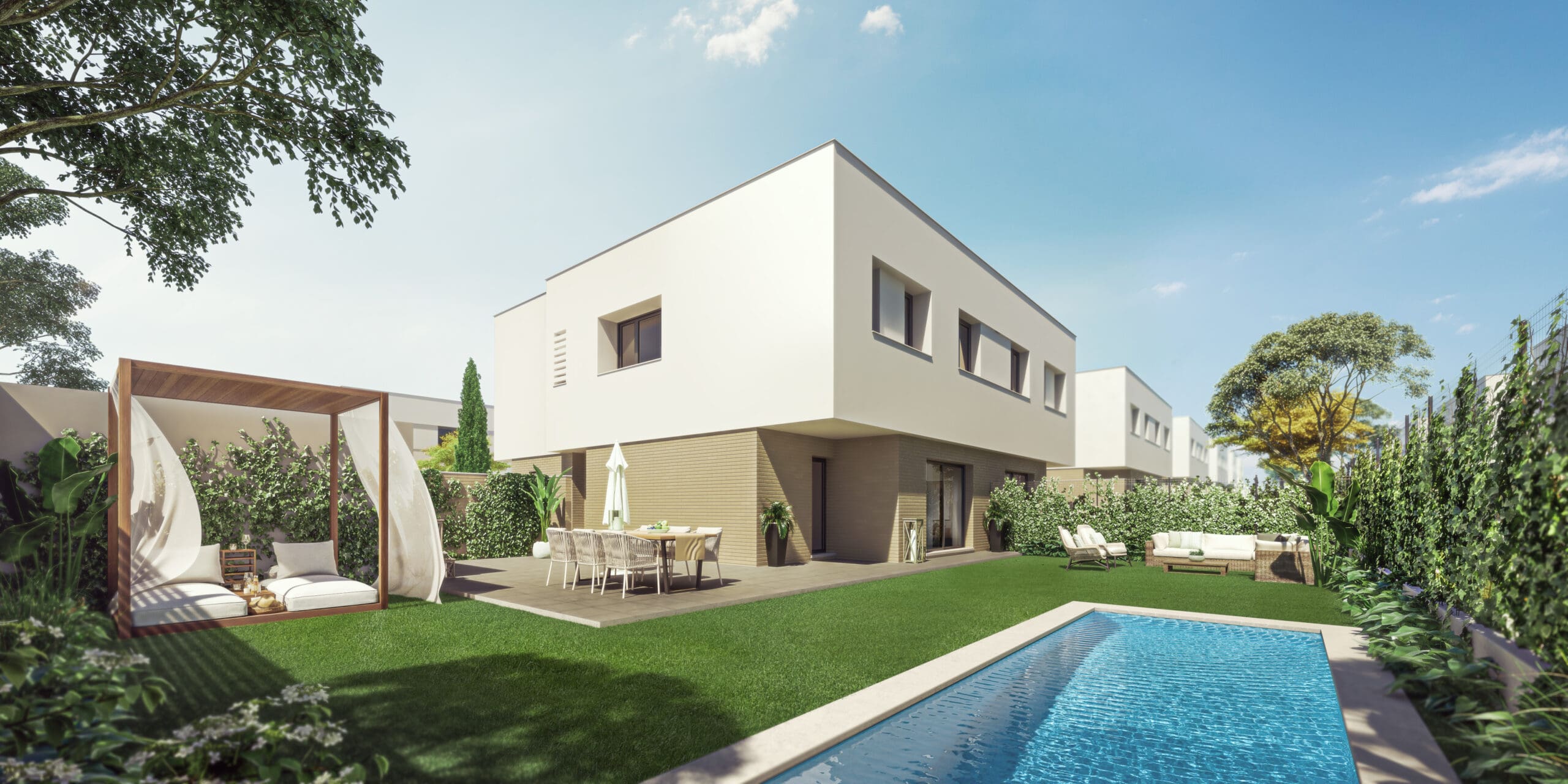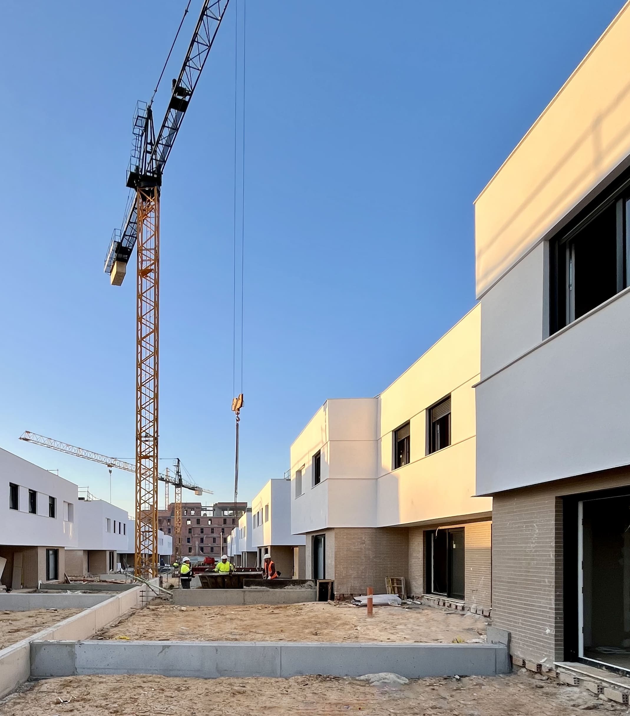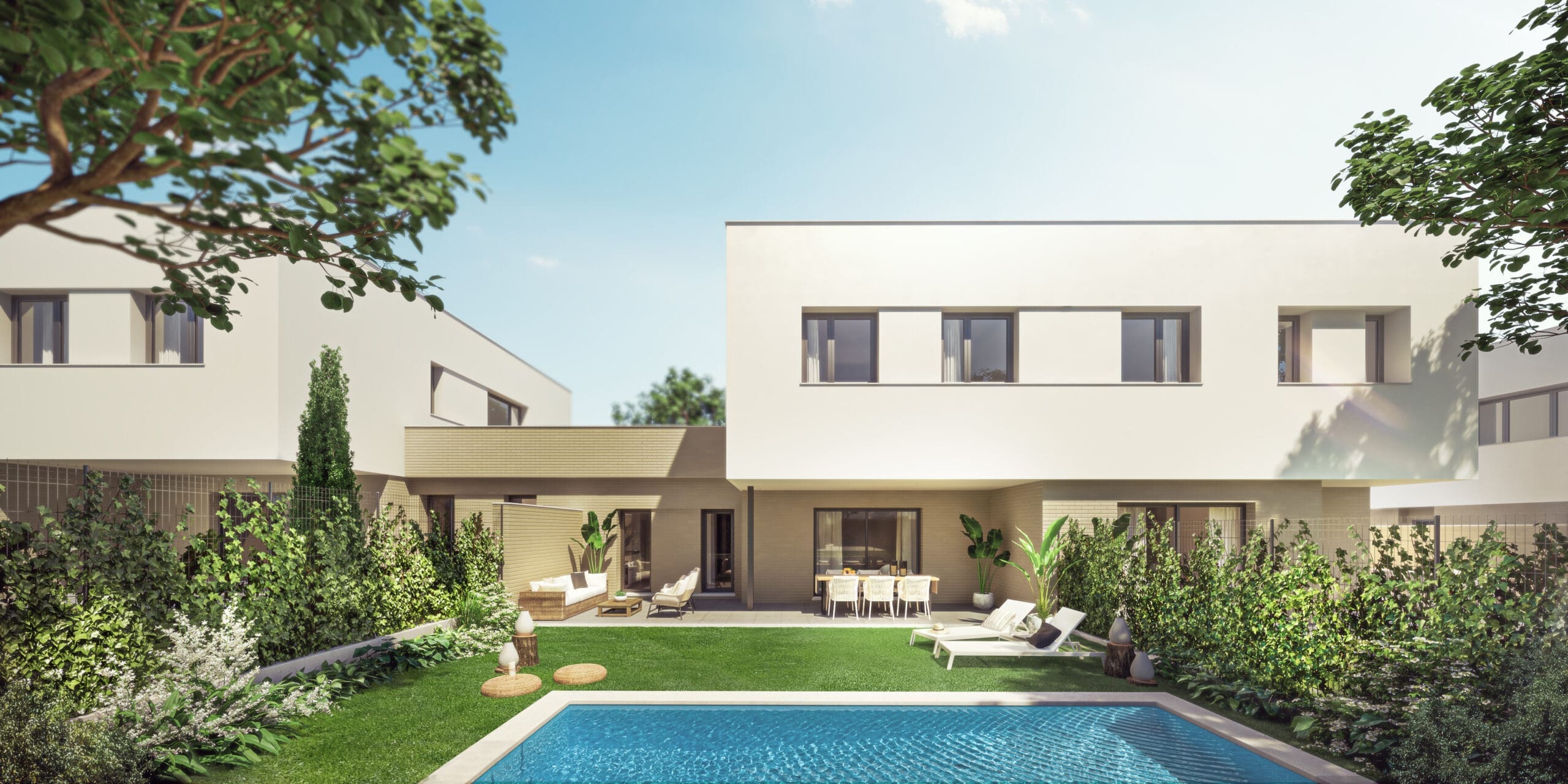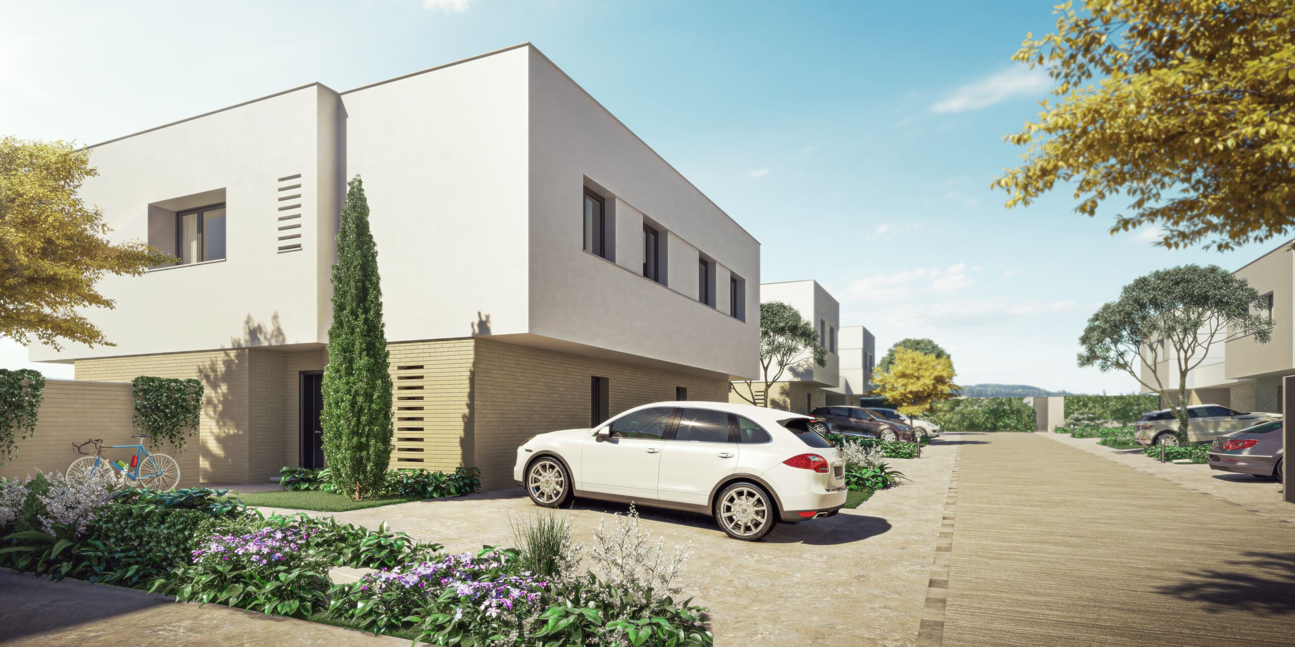 El objetivo es crear una imagen de villas aisladas de gran tamaño y prestancia, resolviéndose las agrupaciones mediante viviendas pareadas y series de 4 viviendas, las cuales se parean dos a dos en su planta superior, trabajando el volumen para que sigan manteniendo la imagen de villas aisladas.