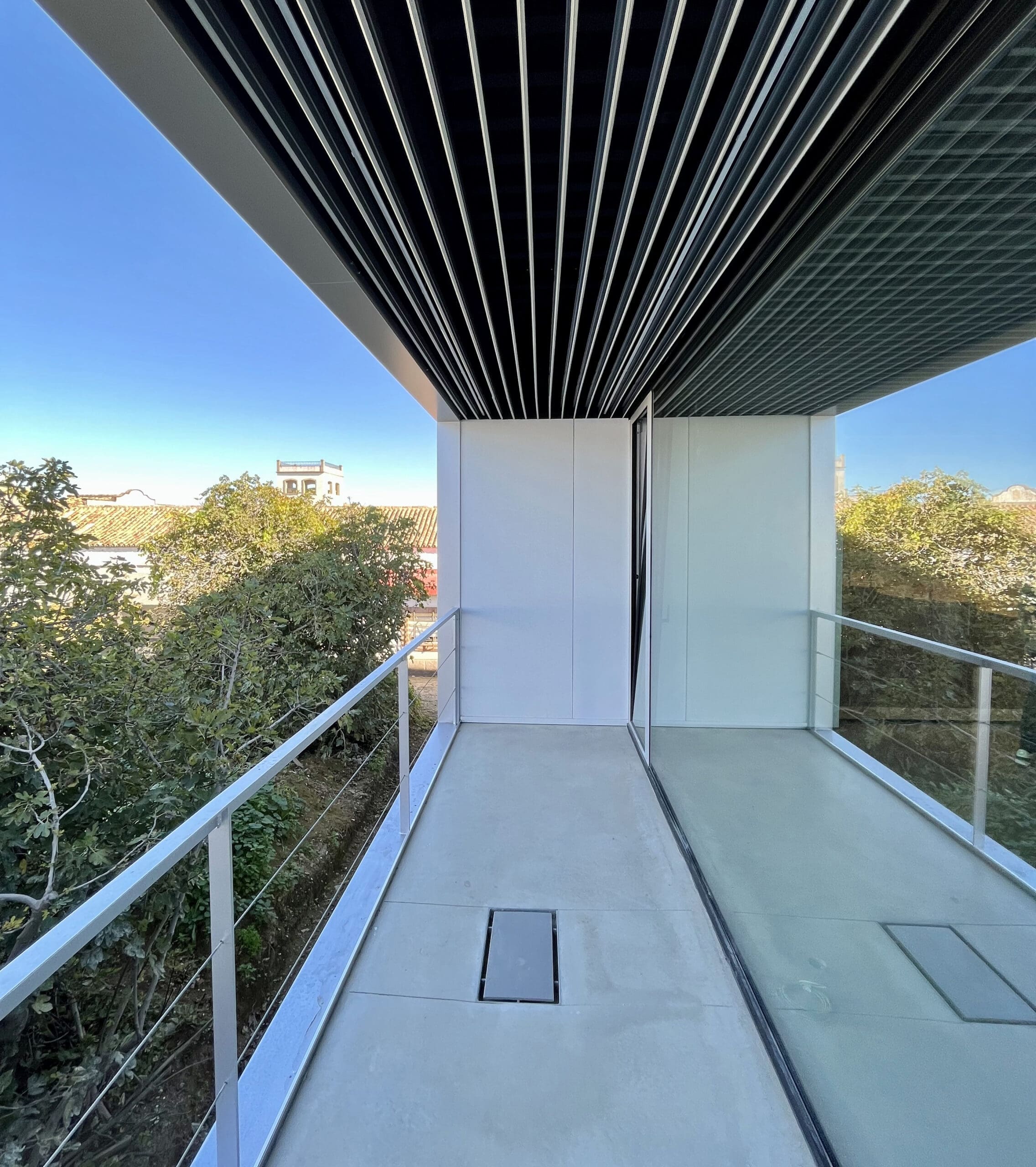 En una primera fase, se extraen del interior del conjunto los espacios de producción más contaminantes, manteniendo en el interior solo los espacios originarios de almacenamiento por bocoyes y el lagar. El nuevo edificio industrial se implanta asegurando los flujos de producción con las naves de bodega y vinculado a los espacios exteriores del jardín. Su imagen se proyecta mediante colores claros y una piel vegetal que mimetiza el edificio con los jardines, una piel viva que irá cambiando a lo largo del tiempo y las estaciones del año. El nuevo edificio se ubica estratégicamente en un cuidado segundo plano frente a la preeminencia de la edificación original de la Bodega. De esta forma se logra la convivencia entre la tradición de la Bodega y su adaptación tecnológica adecuada a las demandas del mercado.
