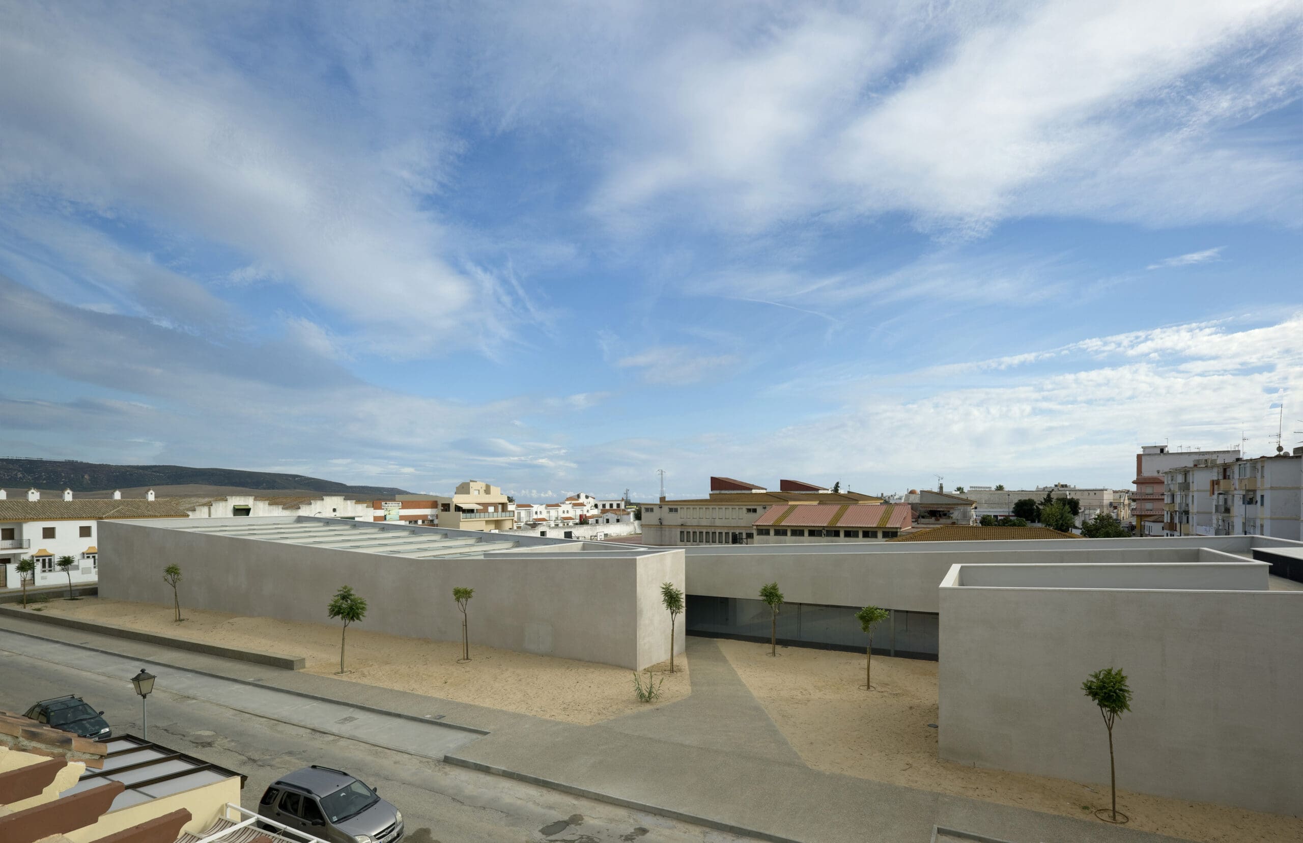 La implantación de esta infraestructura en las Marismas de Barbate persigue dos objetivos principales: abordar la cuestión de la escala y aproximarse al entorno. Dada su ubicación en el borde del núcleo urbano, se optó por una ocupación extensiva del programa en la parcela. El edificio ajusta su escala reforzando la horizontalidad y se integra paisajísticamente con el entorno. Sus cubiertas buscan hacer un guiño a las tradicionales naves de saladeros que aún ocupan las referencias visuales del pinar.