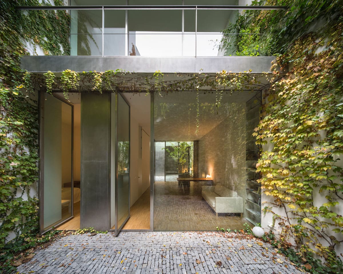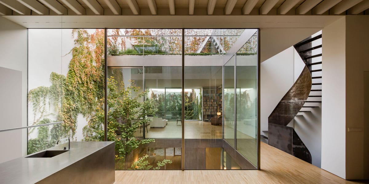 La alternancia de vacíos y crujías, junto a la doble fachada Norte-Sur, favorece la ventilación cruzada y el soleamiento, optimizando la eficiencia energética. Mientras que la vegetación caducifolia permite filtrar y atemperar el clima local, introduciendo variaciones naturales de luces y matices en la vivienda urbana.