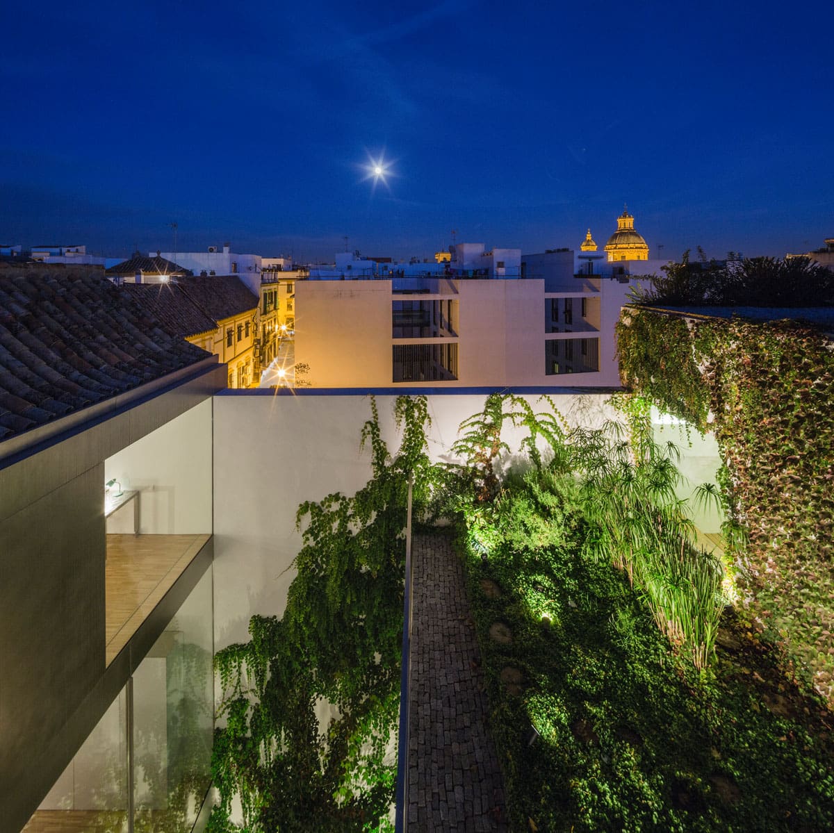 En el diseño de esta vivienda familiar, la intervención se fundamenta en recuperar la parte histórica del inmueble para conformar un nuevo hábitat doméstico, sostenible y hospitalario, con elementos esculturales que responden al análisis del entorno. El edificio se concibe como una vasija capaz de contener una porción de vegetación perdida en la ciudad, extendiendo un manto vegetal a lo largo de varios planos ajardinados.